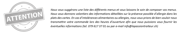 Le Service Traiteur La Passion vous propose à nouveau son concept « Drive La Passion » installé sur le parking de Glasson-Matériaux à Bulle pour les fêtes de fin d'année!