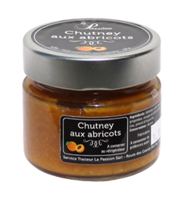 Ingrédients : Abricot, sucre roux, oignon, citron, gingembre, vinaigre de cidre, girofle, sel, poivre, eau, piment d’Espelette